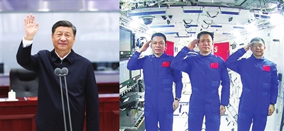 习近平:看到你们状态很好、工作顺利,大家都很高兴。建造空间站,是中国航天事业的重要里程碑,将为人类和平利用太空作出开拓性贡献。你们是新时代中国航天事业无数奋斗者、攀登者的代表。希望你们密切配合,圆满完成后续任务!祝你们在太空工作生活顺利,我们在北京等候各位凯旋!