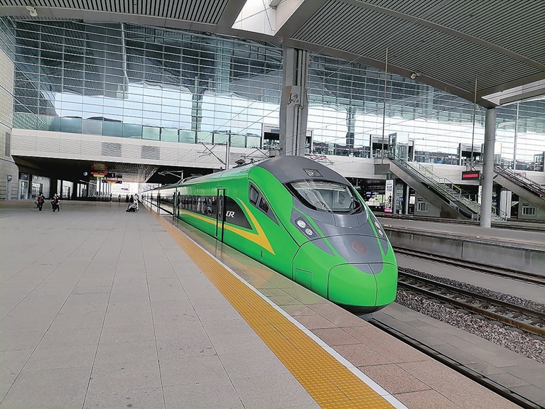 另外,太原至吕梁这条线路采用“绿巨人”动车组列车。这一动车组的外形和常见的“和谐号”“复兴号”高铁列车相似,同为子弹头式的流线型车身,颜色亮丽,车身主体为醒目的绿色,配上形如闪电的黄色线条,颇为帅气,被网友亲切地称为“绿巨人”。