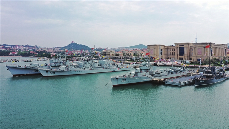 据海军博物馆馆长张利波介绍,海军博物馆以人民海军发展沿革为主轴,以海军历史上著名战役和战斗、重要事件、重大发展成就、武器装备和英模人物为重点,通过4000余件文物、1200余幅图片,近百组雕塑、浮雕、场景、油画,以及40多个视频等,全方位、全过程、全景式展现了人民海军在中国共产党的坚强领导下,从无到有、从小到大、从弱到强,一路劈波斩浪,取得举世瞩目伟大成就的创业史、奋斗史、发展史,突出展现了党的十八大以来人民海军发生的历史性变革。