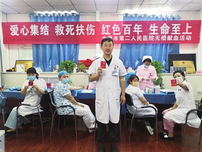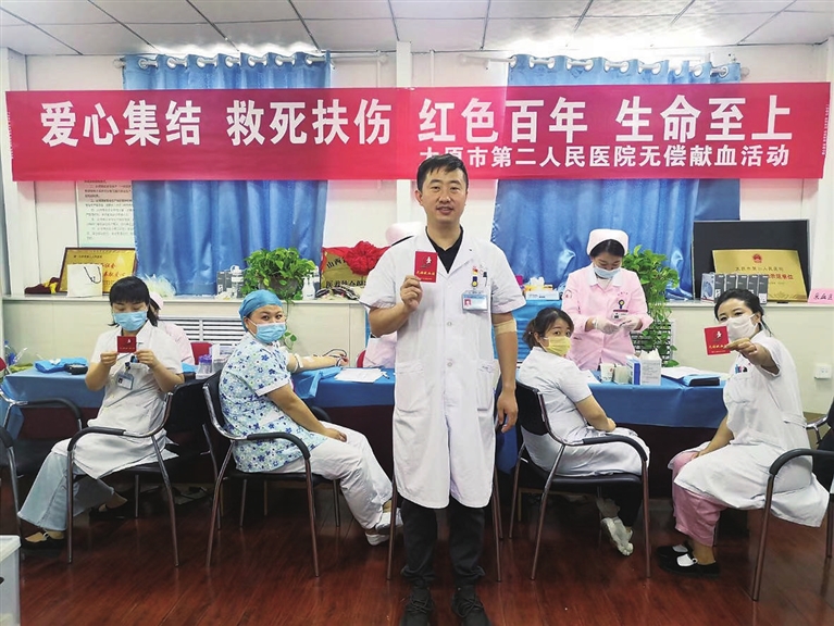 6月24日,市二院组织“迎七一献爱心”无偿献血活动,平时救死扶伤的白衣天使,纷纷撸起袖子献出热血。当天共有36名医护人员献血1.36万毫升。