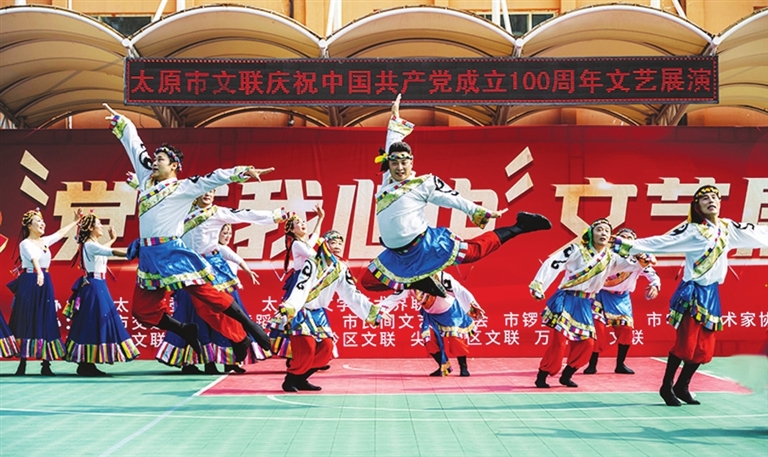 为庆祝中国共产党成立100周年,6月28日,由中共太原市委宣传部、太原市文学艺术界联合会主办的“党在我心中”广场舞展演在太原市交通学校举行,来自全市的15支舞蹈队参加。 景玉平 摄
