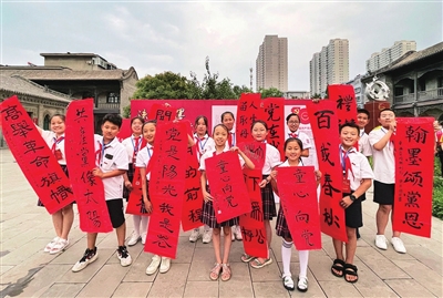 书法一直是杏花岭区中小学的一项特色,国师街小学、胜利街小学、坝陵桥小学等学校都是书法特色学校。在展演现场,同学们的书法作品集赢得大家一致好评。在展示环节,刘思池小朋友拿起自己的作品说:“我写的内容是‘初心不忘铸伟业,壮志常怀起宏图’,通过参加这次活动,我不仅认识了很多志同道合的朋友,还了解了中国共产党100年来的光辉历程,收获很大。”