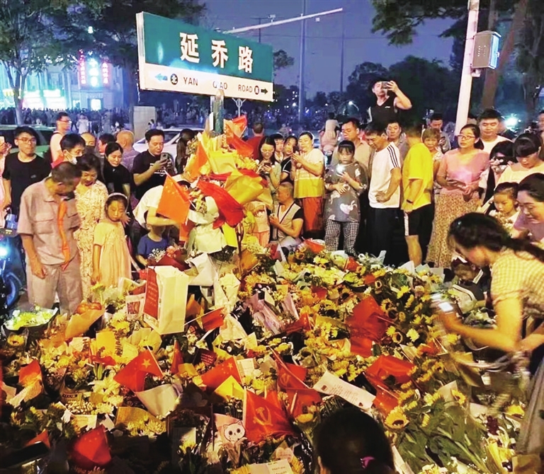 中:群众自发来到合肥市“延乔路”,祭奠陈延年、陈乔年。