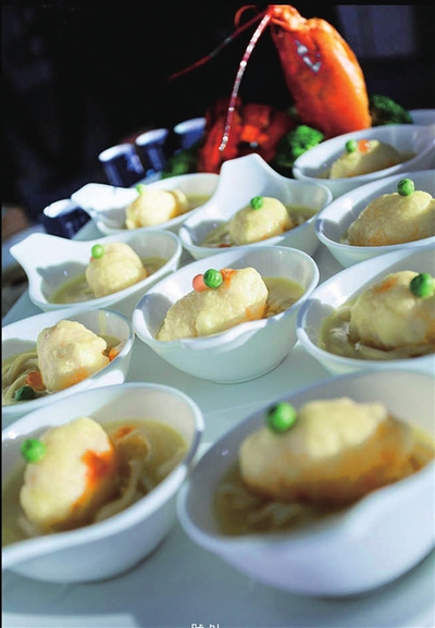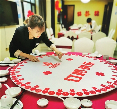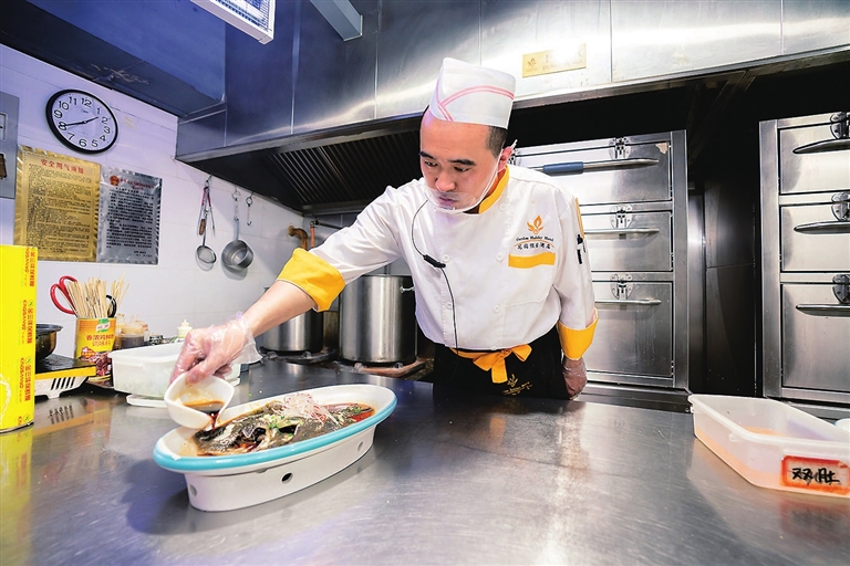 色泽金黄透亮、外脆里嫩的烤鸭;红壳白肉、鲜香美味的大龙虾;翠绿搭配黝黑、香气扑鼻的葱烧海参……一道道菜品,以精致考究的摆盘、层次丰富的口感,让前来用餐的客人不由得暗自叫绝、大快朵颐。