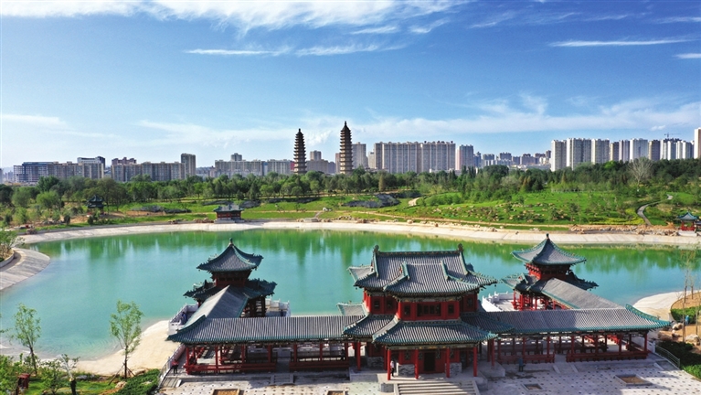 推窗见绿、出门入园,是人们对美好城市生活的愿景。经过几年的建设,太原街头绿地小品星罗棋布,滨河东路、阳兴大道等道路沿线绿意盎然,放眼处满目皆绿、处处是景;迎泽公园、文瀛公园、晋阳湖公园……各个公园内的绿植花卉、湖光水韵让人悠然陶醉。在众多已建成的综合类公园中,双塔公园尤为重要,因为这是东部地区第一座大型综合类公园。此次建成开放的为双塔公园一期,总面积为89.6公顷,相当于迎泽公园的1.5倍,成为继晋阳湖公园、森林公园后的太原市第三大公园。公园内,绿意格外浓,因为绿地面积达到64.15公顷,占到总面积的一半以上,而且栽种的油松、国槐、白蜡、白皮松等均是适宜于北方气候的树种。