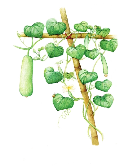 近读古文,才知平凡的瓠子,在《诗经》里就有。我们的先人不仅吃了瓠子,连瓠叶也一并吃了。《诗经·小雅·瓠叶》云:“幡幡瓠叶,采之亨之。君子有酒,酌言尝之。”家中来了客人,菜园里微风吹拂,瓠叶轻翻,瓠子长得喜人;摘一把嫩绿的瓠叶,青炒一盘招待客人,品着小酒,其乐融融。这样的日子,苦中有乐,不乏诗意。