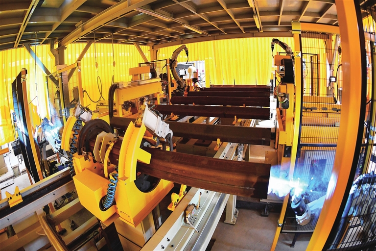 据公司技术负责人李碧玉讲,新工厂关键装备数控化率达100%,全部生产设备数控化率达到84.1%,实现产品从下料、组对、焊接、涂装、转运全流程制造环节的自动化、智能化、数字化,所有产线均达到国内领先、国际先进水平。项目已申报山西省高端装备产业集群智能制造示范企业。