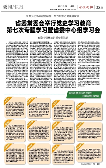 省委常委会举行党史学习教育第七次专题学习暨省委中心组学习会