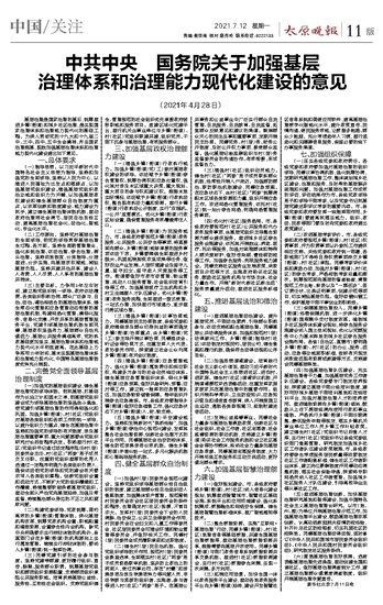 中共中央 国务院关于加强基层治理体系和治理能力现代化建设的意见