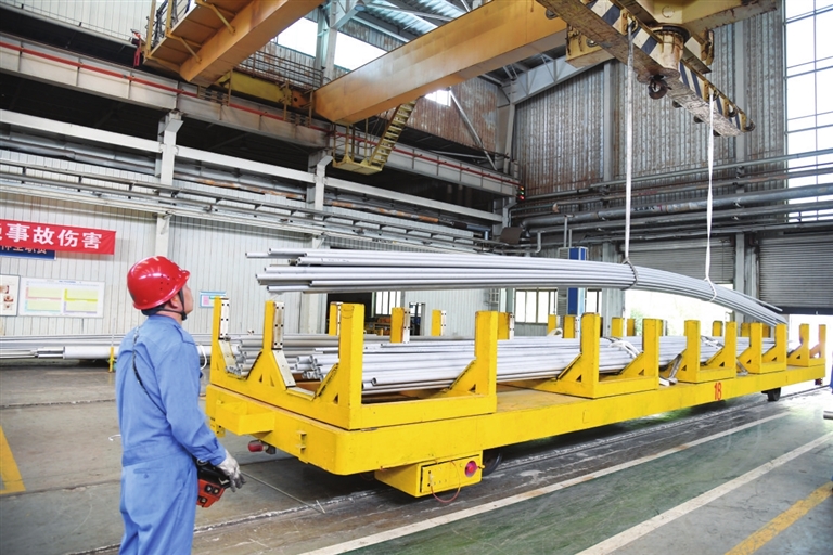 看着这些不锈钢管,有的光洁锃亮、有的磨砂质感、有的粗壮、有的纤细、有的笔直、有的弯曲。据介绍,不同钢管用途不同,一般军工用大口径厚壁管;核电项目用外方内圆管及各种异型管;电站锅炉用高等级锅炉管;化工用超级奥氏体管、镍基合金管;海水淡化、油气输送用双相钢管……