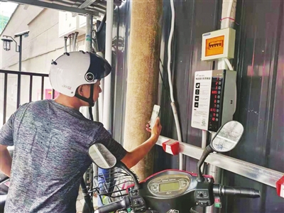 居民闫师傅下班回到小区,将电动车推进智能车棚,熟练地给电动车进行充电,高兴地说:“我上班比较远,靠骑电动车解决通勤问题,以前在楼道里拉根电线给电动车充电,总觉得不安全,害怕着火。有了智能充电桩,给电动车充电就方便、安全、放心多了!”