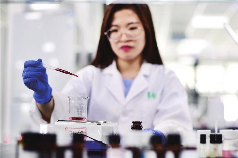 公司的产品陈列室内,淡淡的牡丹花香萦绕其间,沁人心脾。陈列架上,数十种美妆产品展示了纳安生物强大的研发能力。2018年,美国约翰斯·霍普金斯大学博士渠志灿带着回报家乡的情怀,率领海外核心技术团队,携带启动资金和自主知识产权技术回到山西,落地山西综改区和长治高新区,创建纳安生物这一国家高新技术企业。