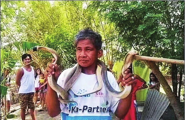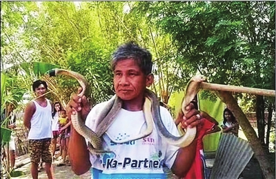62岁的贝尔纳多·阿尔瓦雷斯在邦阿西楠省被菲律宾北部眼镜蛇咬死,当时他惊恐的邻居们则正在一旁观看。
