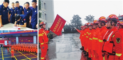 7月21日,太原市消防救援支队抗洪抢险突击队队员们在请战书上按上手印,并庄严宣誓,紧急驰援河南。此次增援,太原市调集112名指战员、17辆救援车、2300余件器材装备组成抗洪抢险突击队。 张丽琴 阎男男 摄