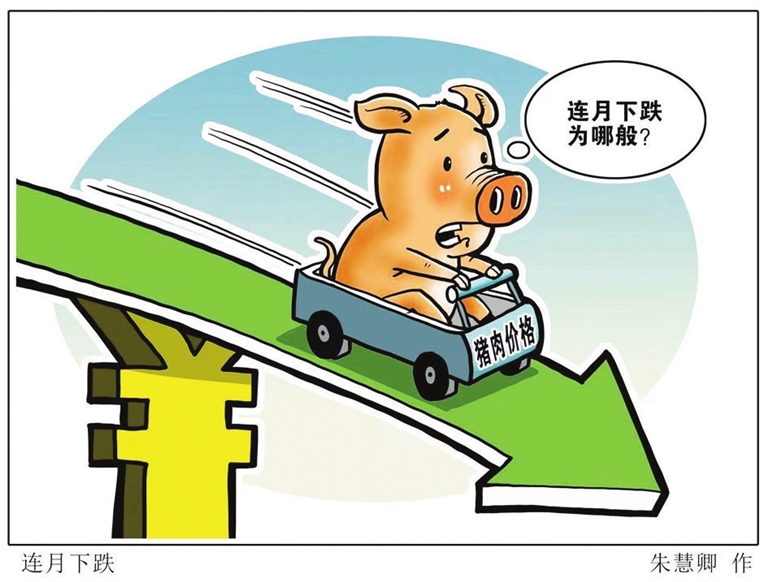 近期猪肉价格持续下行,据国家统计局测算,6月份,猪肉价格同比下降36.5%,降幅比上月扩大12.7个百分点;环比继续下降13.6%。业内人士分析,本轮猪肉价格大幅下跌主要受供求影响,市场猪肉供应充足,遇上消费季节性回落,导致价格持续下行。 (新华社7月19日)