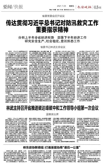 林武主持召开省推进碳达峰碳中和工作领导小组第一次会议