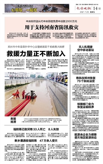 第14版:关注河南强降雨 心同在 一起扛