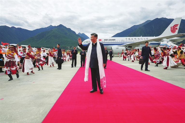 7月21日至23日,习近平在西藏自治区党委书记吴英杰、自治区政府主席齐扎拉陪同下,先后来到林芝、拉萨等地,深入农村、城市公园、铁路枢纽、宗教场所、文化街区等看望慰问各族干部群众。