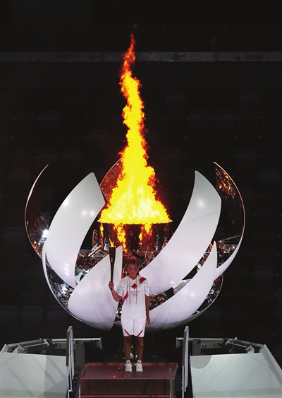 图为日本运动员大坂直美在开幕式上点燃主火炬。 新华社 发