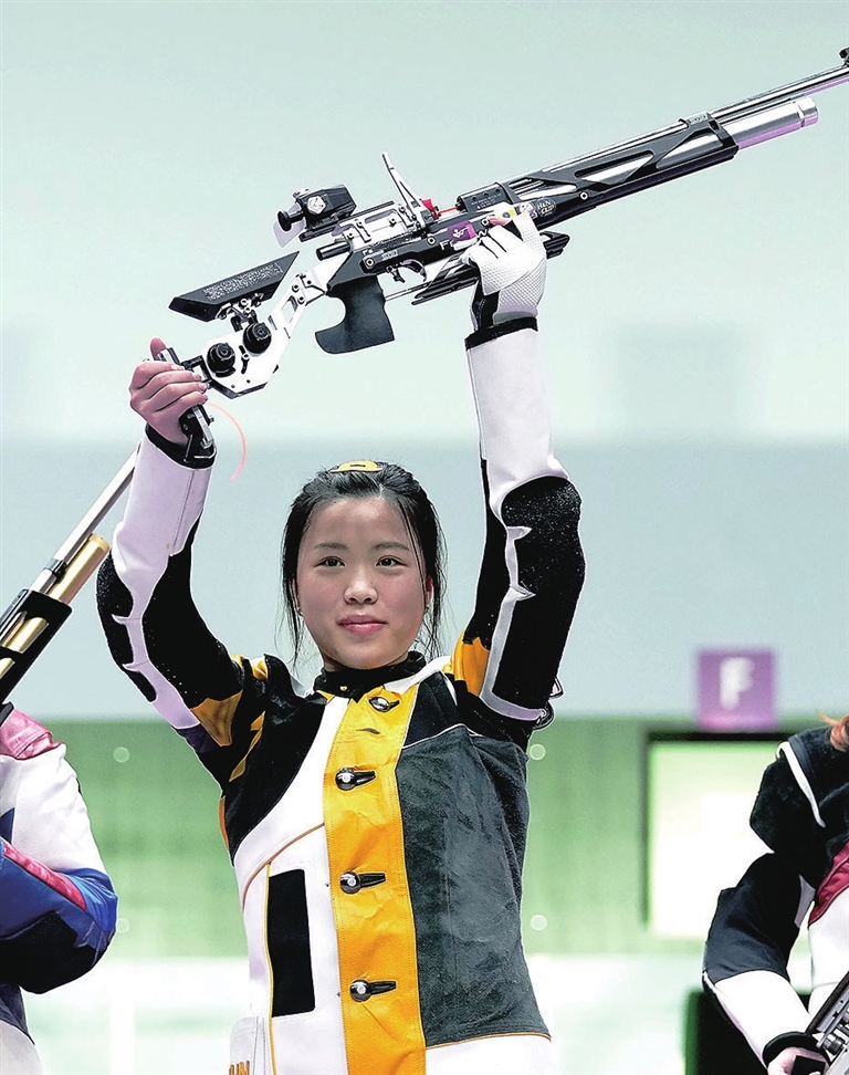 当日,在东京奥运会射击女子10米气步枪决赛中,中国选手杨倩夺冠,赢得东京奥运会首枚金牌。 新华社 发