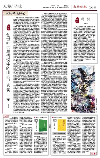 在神农氏炎帝时代,农业得到了快速发展。炎帝亲自尝百草、种五谷、寻草药、救民病,制作耒耜等农业生产工具,发明了织布技术、制陶技术以及五弦琴等乐器,建立了交易市场等。至轩辕氏黄帝时期,生产水平进一步提高。养蚕、打井、制车、造船、宫室、指南针、鼓铙军乐、天文历法等或进一步得到发展,或被新创。最重要的是这一时期仓颉造字,“天雨粟、夜鬼哭”,可谓惊天动地,形成了华夏最重要的文明成果。黄帝去世后,被葬于“桥山”。据钱穆先生研究,桥山应该在山西旧襄陵县东南四十里,接曲沃县的地方。炎帝与黄帝,这两位在中华文明发展进程中创立了伟大功勋的先祖,是我们民族共同的祖先。