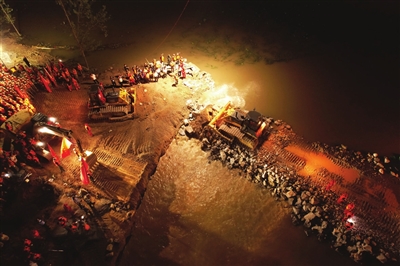 连续两个昼夜合力奋战,到26日2时27分,大堤上终于传来喜讯:卫河决口成功合龙!