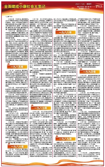 | 太原晚报 全面建成小康社会大事记 27 2021-07-281 2021年07月28日 星期三 |