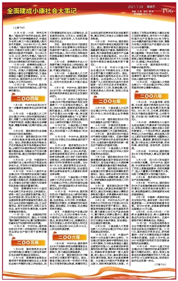 | 太原晚报 全面建成小康社会大事记 30 2021-07-281 2021年07月28日 星期三 |