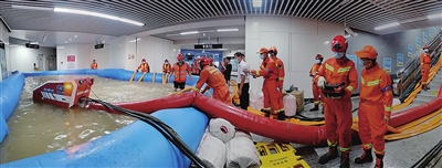 山西消防人员勘察现场发现,地铁站两站区间内积水750米,最深处6米,初步估算约有5.9万立方米。山西消防与郑州地铁公司、郑州一建等单位随即制定了排水方案:采取接力方式快速排水,即在地下一层设置水囊,将地下二层站台及隧道区间的积水抽至水囊里,再利用水陆两用排涝机器人将水囊中的水抽排至地面。