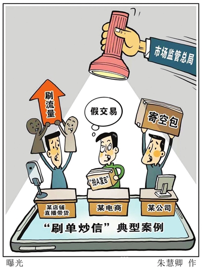 直播间雇“水军”刷流量、虚假交易“拍A发B”“寄空包”刷单……市场监管总局28日公布今年第二批网络虚假宣传不正当竞争典型案例。今年以来,市场监管总局在全国范围内开展重点领域反不正当竞争执法专项整治,从曝光的典型案例看,“刷单炒信”违法行为日益花样翻新,欺骗误导消费者,损害公平竞争的市场秩序。 (新华社7月28日)