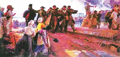抗美援朝战争,是在交战双方物质力量极其悬殊的条件下进行的一场现代化战争,是保卫和平、反抗侵略的正义之战,是中国人民站起来后屹立于世界东方的宣言书,是中华民族走向伟大复兴的重要里程碑,为世界和平和人类进步事业作出了巨大贡献。1977年郑洪流创作的油画《跨过鸭绿江》,以鸭绿江铁桥作为油画的视觉背景,再现了志愿军跨过鸭绿江赴朝作战保家卫国的历史瞬间。画面远处为鸭绿江及铁桥,近处是志愿军战士气宇轩昂地大步走来,雄赳赳、气昂昂地奔赴朝鲜战场,两侧为朝鲜人民欢迎志愿军战士的热烈场面。画面以强烈的精神风貌体现“最可爱的人”不畏强权、敢于斗争、勇于胜利的血性铁骨,艺术感染力很强。