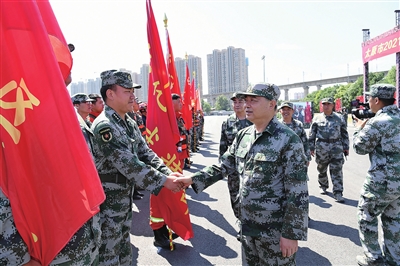 上午9时,3枚红色信号弹射向东南方向,军地联合演练正式开始。市联合指挥部下达命令后,军地闻令而动、听令而行,组织国防快速动员、反恐维稳、设施抢修、灭火救援、抗震救援等10个课目逐项展开。迎泽区联合指挥部紧急动员征召,预征人员召之即来、来之能战;阳曲县民兵分队在最短的时间内开辟一条新路,保障主力部队机动过境;清徐县、娄烦县民兵应急连迅即收拢集结,依法处置突发情况,快速恢复社会秩序;晋源区民兵分队及时救助被困人员,抢修重要民生设施,保障正常供水供电;尖草坪区防化救援队迅速抵近侦察,检测现场环境,完成危化品存储车间封堵、洗消任务;古交市矿山救护队启动应急响应,有效排水、灭火,被困人员全部升井;杏花岭区灭火分队一线展开、全力突击,合围森林火场,扑灭全部明火;万柏林区民兵分队派出搜索分队、救援分队、医疗救护队,解救倒塌房屋中的被困群众;小店区民兵分队综合运用侦查预警、伪装防护等手段,有效提升重点目标防卫能力。演练过程中,由各县(市、区)人武部组织的参演分队军容严整、士气高昂,军事课目演练紧贴使命、实战实训,体现了党的政治优势、组织优势、群众优势,展示了人民武装建设的最新成果,彰显了民兵预备役部队过硬的能力素养,赢得了在场同志的阵阵掌声。演练结束后,罗清宇、张新伟等来到整齐列队的参演队伍中间,与参演官兵亲切握手,表示慰问并致以节日问候。