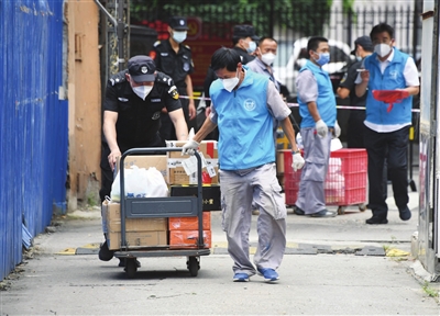 8月2日,北京新增1例京外关联本地新冠肺炎确诊病例,为7月29日公布确诊病例的密切接触者,其住址为北京市海淀区首体南路20号国兴家园。目前,国兴家园小区已封闭管理。小区所在的甘家口街道安排社区工作人员、志愿者,通过递送小区居民订购物品、回收生活垃圾、询问居家老人生活状况等方式,保障小区内居民的日常生活。新华社 发