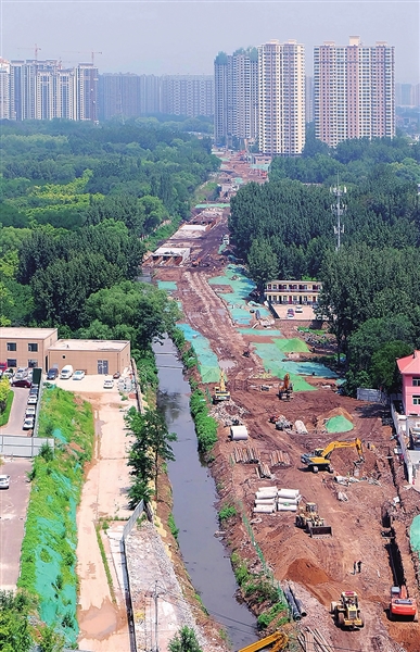 8月5日,我市森园路道排工程正在加紧施工。该工程位于森林公园东侧,北起尖草坪北街,南至北中环街,全长约3公里。 赵世凯 摄