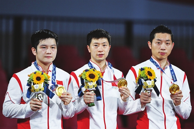 至此,中国乒乓球队在东京体育馆收获了全部5枚奥运乒球金牌中除混双外的4枚,外加混双和男、女单打的3枚银牌。
