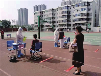 社区全体工作人员、网格员及辖区物业人员、居民代表、驻地单位代表参加了此次演练。演练活动严格按照标准进行,现场设置入口测温扫码区、等候区、登记贴标签区、采样区、临时隔离区、医疗垃圾暂存区等区域,各区域用警戒线隔离,设置明显标识。