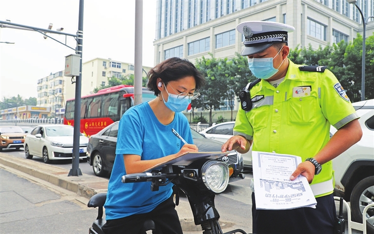 8月18日,交警杏花岭大队五中队开展“一盔一带”安全守护行动,民警们走上街头,向过往群众发放宣传单,对未遵守交通安全规则的市民进行教育,助推市民养成安全文明出行的良好习惯。