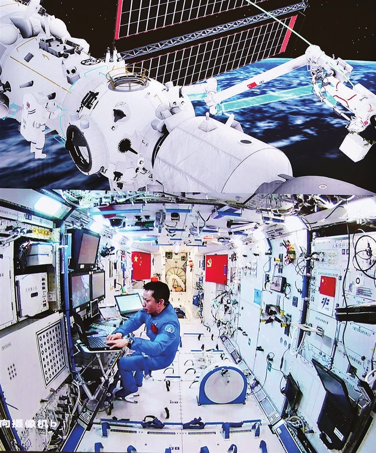 聂海胜、刘伯明先后出舱 汤洪波在舱内配合支持两人开展舱外操作
