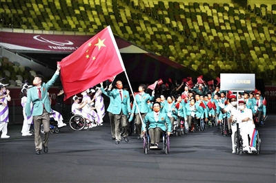 女子轮椅射箭运动员周佳敏、男子肢残田径运动员王浩担任开幕式中国代表团旗手。