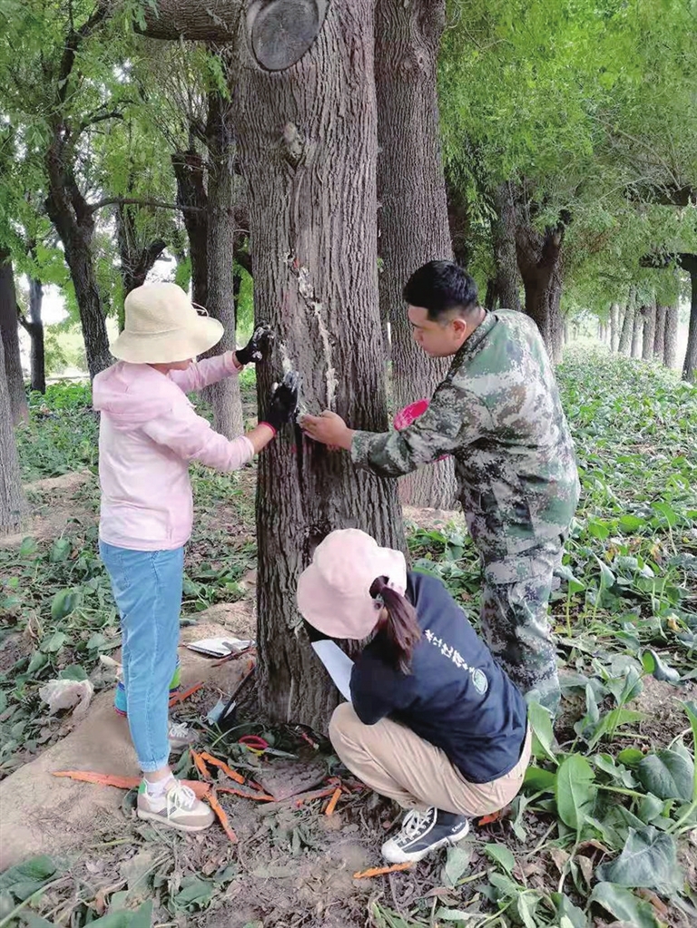 园丁显身手,白蜡做“美颜”。连日来,市园林科创服务中心园丁,为五一路改造时移植的30株白蜡大树修补了树皮。这些白蜡虽长势良好,但树皮多有损伤,园丁们采用仿真树皮粘贴法修补,首先清理去除死树皮,对裸露部分进行打磨并做防腐处理,然后填补树洞、粘贴假树皮并用接缝剂填充纹理,最后上色并仿真修饰,以保证这些树木遇到需要可直接移栽“上岗”。