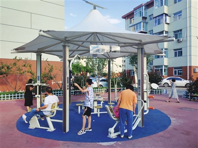 驿站还有照明设备,保障居民在晚上也能正常锻炼和休憩。驿站所有供电均来自太阳能,使户外健身更环保、更智能、更科学、更有趣。
