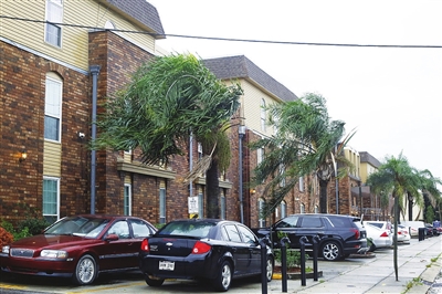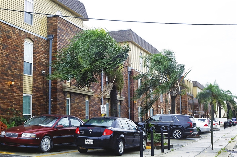 8月29日,在美国南部路易斯安那州新奥尔良市,行道树枝叶在强风中摇摆。