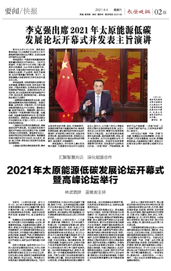 李克强出席2021年太原能源低碳发展论坛开幕式并发表主旨演讲