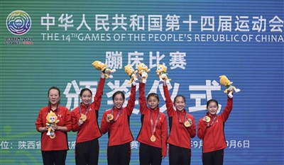 山西蹦床队成立于1998年,在2005年第十届全国运动会上,董栋、涂潇、穆勇峰、黄文俊、张杰、高杰等6名山西选手以154.80分夺得蹦床男子团体桂冠,由此奠定了我省在全国蹦床项目的领军地位。截至昨日,山西蹦床队在最近五届全运会上,均有金牌入账。