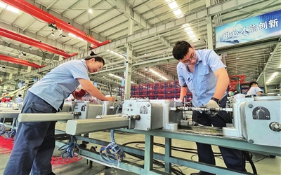 9月7日,中北高新技术产业开发区山西铁路装备制造集团太原电务器材有限公司,工作人员正在调试电液转辙机。工作人员介绍,公司拥有数十项电液转辙机专利产品,其主打机型技术指标达到国际先进水平,占国内高速铁路市场份额一半以上。 记者 邓寅明 摄