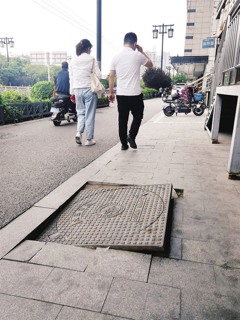 这是记者9月6日拍到的图片。五一路与精营中横街交叉口往北,路西人行便道上,一口污水窨井的井口出现破损,导致井盖不稳,影响路人通行,还有安全隐患。有路人介绍,该情况出现多日,不见处理。记者致电12345政府便民服务热线,工作人员表示会尽快通知产权单位处理。