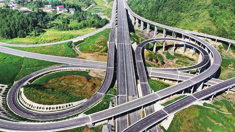 这是9月9日拍摄的石(阡)玉(屏)高速公路花桥互通立交(无人机照片)。