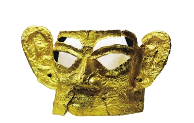 细观古蜀遗址出土的金面具,不难发现它们都是用模具捶揲而成,眉眼镂空,表面打磨光亮。“黄金的延展性很好,可以锤打得很薄,再嵌刻成需要的造型贴合在头像表面。”冉宏林说。