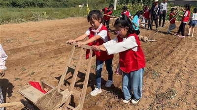 在后沟古村,小记者们参观了村史馆,了解了后沟神秘的历史文化。随后,又参观了从清朝、民国到新中国成立后的多个窑洞遗址。在老师的带领下,孩子们来到农耕园区,认识了各种农作物,感受秋天丰收的喜悦,并在当地农民的指导下,学习耕地,体验农业生产的辛苦。