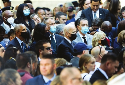 当天,美国总统约瑟夫·拜登夫妇、前总统贝拉克·奥巴马夫妇、前总统比尔·克林顿夫妇、国会议员等美国政要在纽约市世界贸易中心双子塔遗址出席纪念仪式。